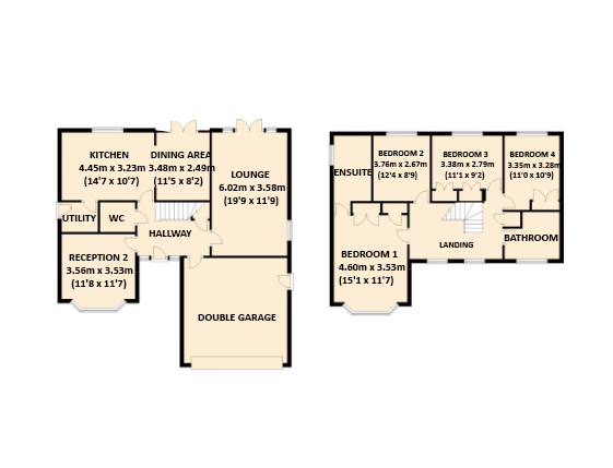 To the first floor, there are four spacious double bedrooms, all with fitted carpets. The master bedroom is particularly impressive, benefitting from a large bay window that creates a bright and airy feel, as well as a contemporary en-suite, featuring ceramic tiled flooring and walls, a separate bath and shower cubicle, and a vanity unit with wash hand basin.